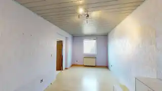 angebaute Garage 21,93 m². Ölbefeuerte Zentralheizung. Satteldach. Seit ca. 3 Jahren unbewohnt, Renovierungsbedarf.